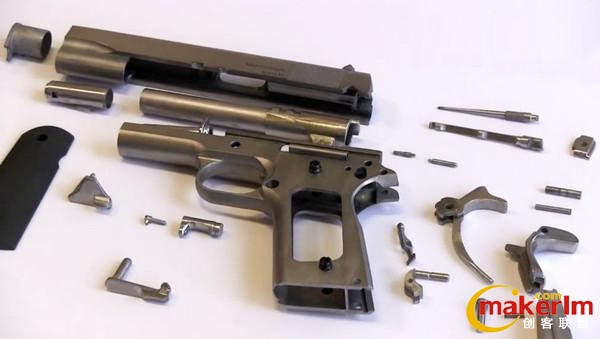 眾所周知,ABS材料或塑料打印的槍支,其持久性自然不能與真槍相比。因此,Solid Concepts公司利用3D打印技術(shù),以經(jīng)典的1911手槍為原型,成功的打印出了一把純金屬槍,連續(xù)發(fā)射50發(fā)子彈后依然能夠保證槍支完好無缺。
